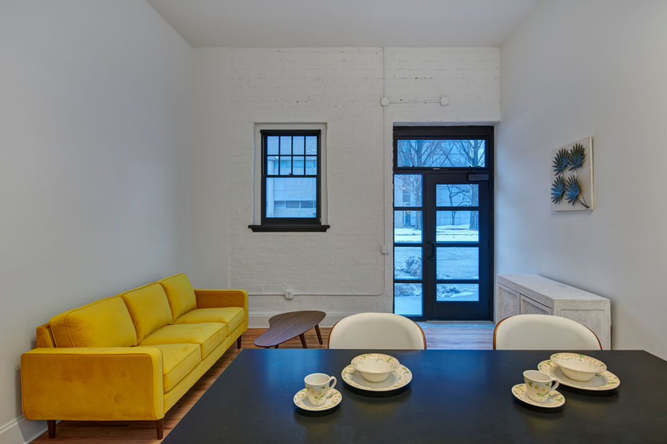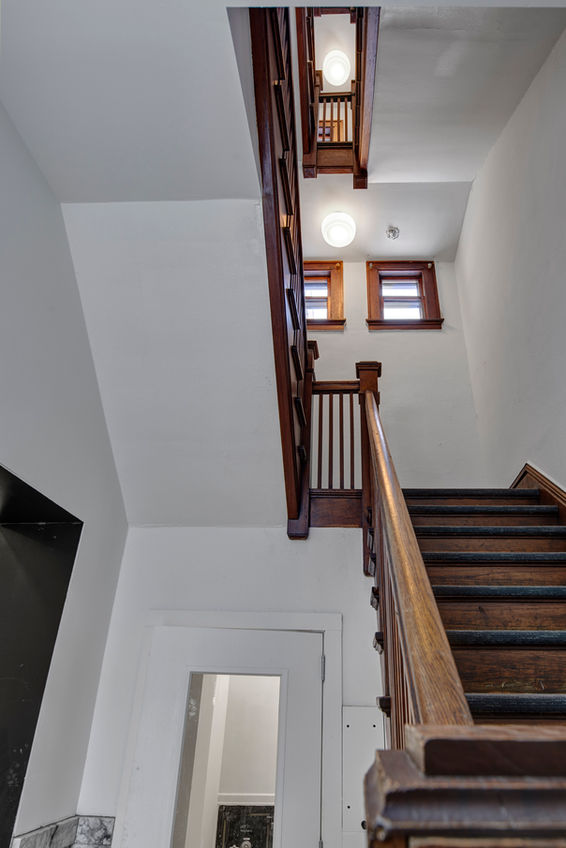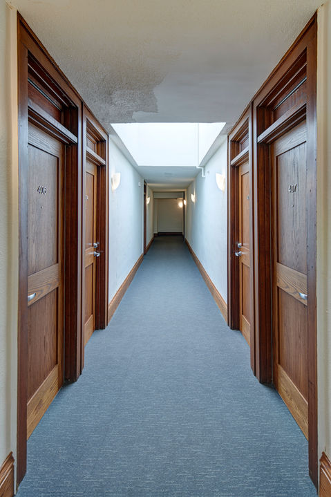 This project is an existing 4-story building that will contain retail, an enclosed parking on the ground level, (6) new residential units on level 1 and 39 existing residential units on the upper 3 levels. The building is currently occupied by Funky Finds on lower level and level one. The remainder of the building is unoccupied. The Owner is planning to put the property on the National Register of Historic Places. Photographer: Cameron Campbell