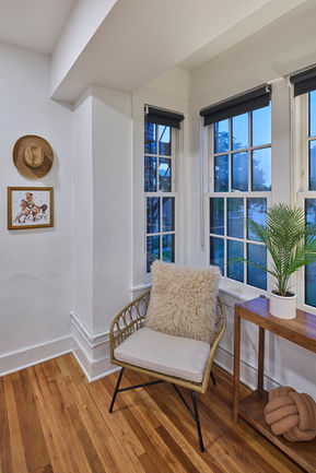 This mixed-use 4-story multifamily building historic rehabilitation project was completed in 2024. Scope of work included restoration of 30 residential units, two commercial tenant spaces, basement support space and development of an attic fitness gym. Work of this contract included; exterior masonry veneer walls, clad wood windows with insulated glass, asphalt shingles, plaster and gypsum board walls, porcelain tile, carpet, vct, interior architectural wood trim and casework; limited miscellaneous carpentry, hollow metal and wood doors, interior glazing, and specialties including toilet accessories, fire extinguishers, and shades/blinds. Photographer: Cameron Campbell