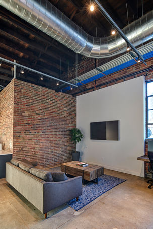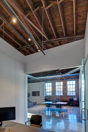 Beginning in the early 1960s, the building was remodeled for various light industrial uses. Some exposed areas were covered with typical cover-up materials (carpet, wood paneling, dropped ceilings). The large garage bay facing E. Grand (with internal ramp) was infilled with masonry and storefront glazing. The storefront window transoms were covered on the exterior and blocked by interior HVAC. The office was converted to an apartment and metal egress balcony stair added. In response to crime, approximately 14 steel windows and at least two doorways that provided light and access to the rear auto garage were bricked shut. And dropped ceilings were installed including covering the rear steel trusses.