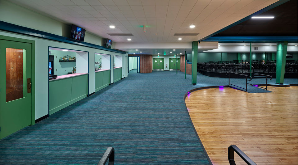The rehabilitation is aimed at adapting the historic building for continued use as a music venue. The treatments carefully balanced the preservation of the historic integrity against upgrades that were necessary in order to transform the building into a modern music venue that can, 1) accommodate a range of entertainers with the light and sound equipment required of contemporary musicians, 2) create a comfortable viewing environment for the audience, 3) support the operational requirements of a music venue, 4) and, control sound transmission for the benefit of the surrounding neighborhood. The planning of this rehabilitation brought together a team of experts representing the range of disciplines necessary to design such a venue while protecting the ballroom's historic character. Based in Des Moines, the new property owner has deep experience in music promotion; he and his team have been actively engaged in the planning process. Aware of the significance of the venue to the community of West Des Moines, the owner has also engaged with the City of West Des Moines in the planning process and gained their support for the rehabilitation. Photographer: Cameron Campbell